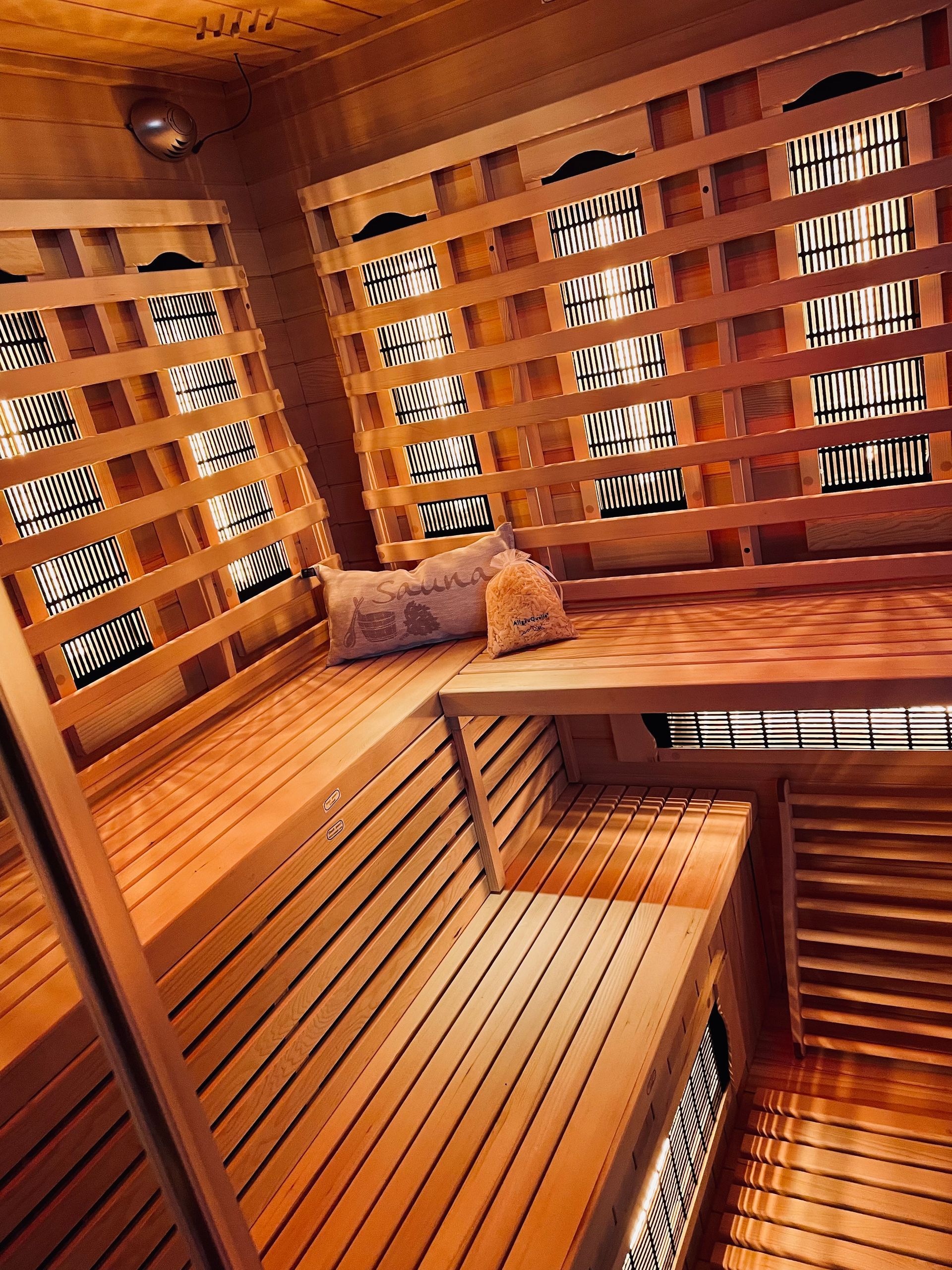 Im Fitnessraum mit Sauna und Kickertisch können Sie aktiv entspannen. Draußen erwarten Sie zwei Terrassen, ein Balkon sowie ein Garten mit Pool & Whirlpool( Juni-Sept). Beide Terrassen sind mit Sonnenschutz ausgestattet( Pergola und Markise) sowie Sonnenliegen, Außenmöbel und einem Holzkohlengrill.