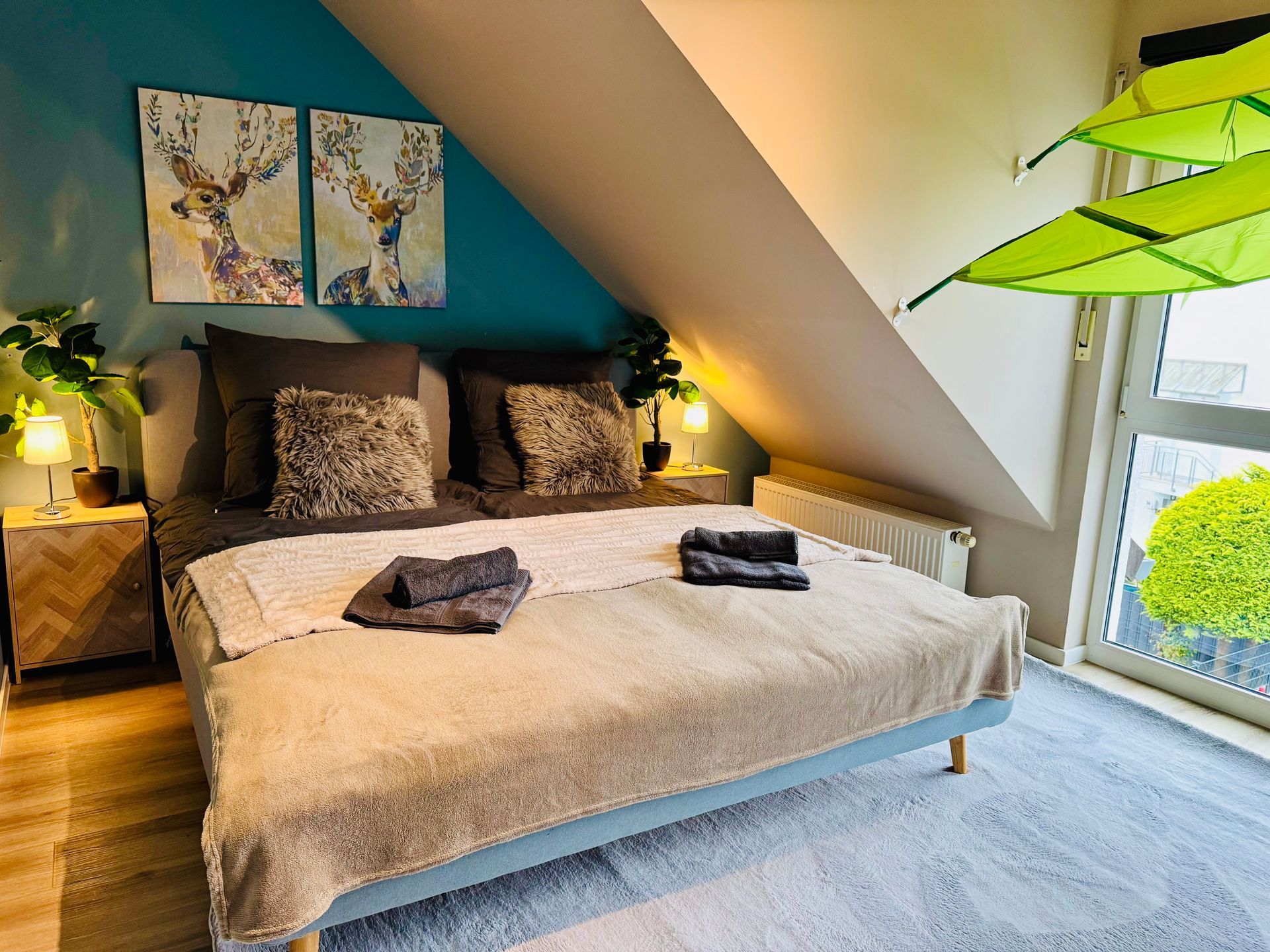 • Schlafzimmer 1: Kingsize-Bett, Einzelbett , Kleiderschrank & Fernseher