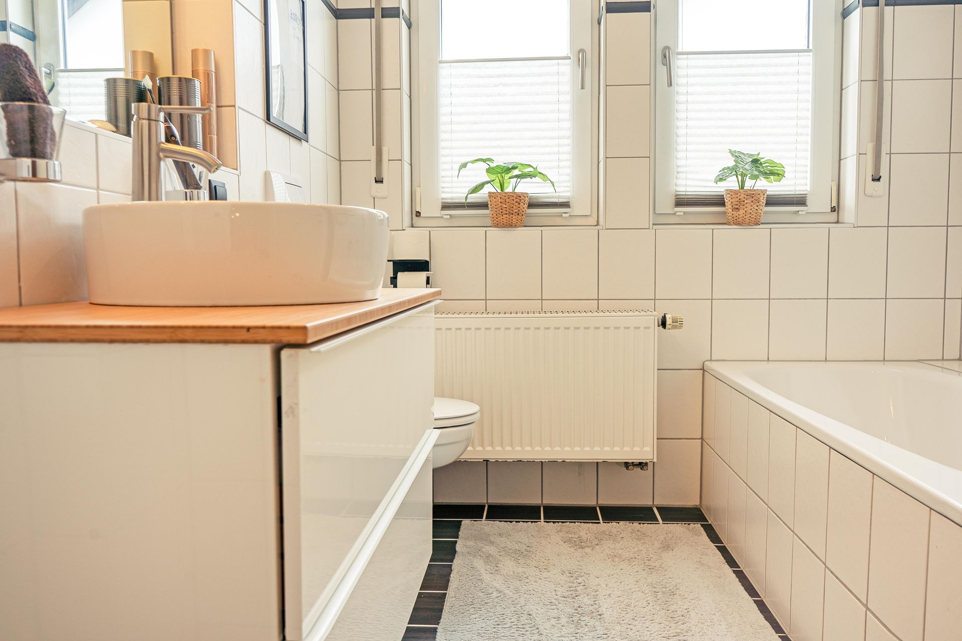 Der große Essbereich mit offener, voll ausgestatteter Küche ist ideal für gemeinsame Mahlzeiten. Ein modernes Bad mit Wanne & Dusche sowie ein Gäste-WC sorgen für zusätzlichen Komfort.